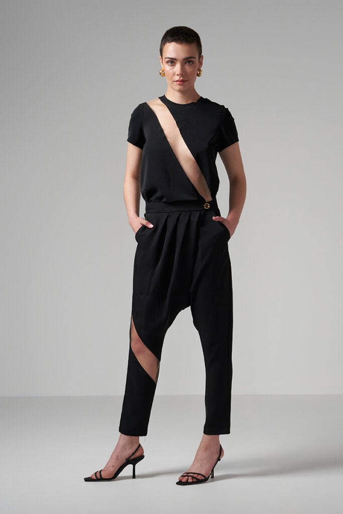 דגם בצבע ורוד בגודל 169 ס”מ ולובש מידה s